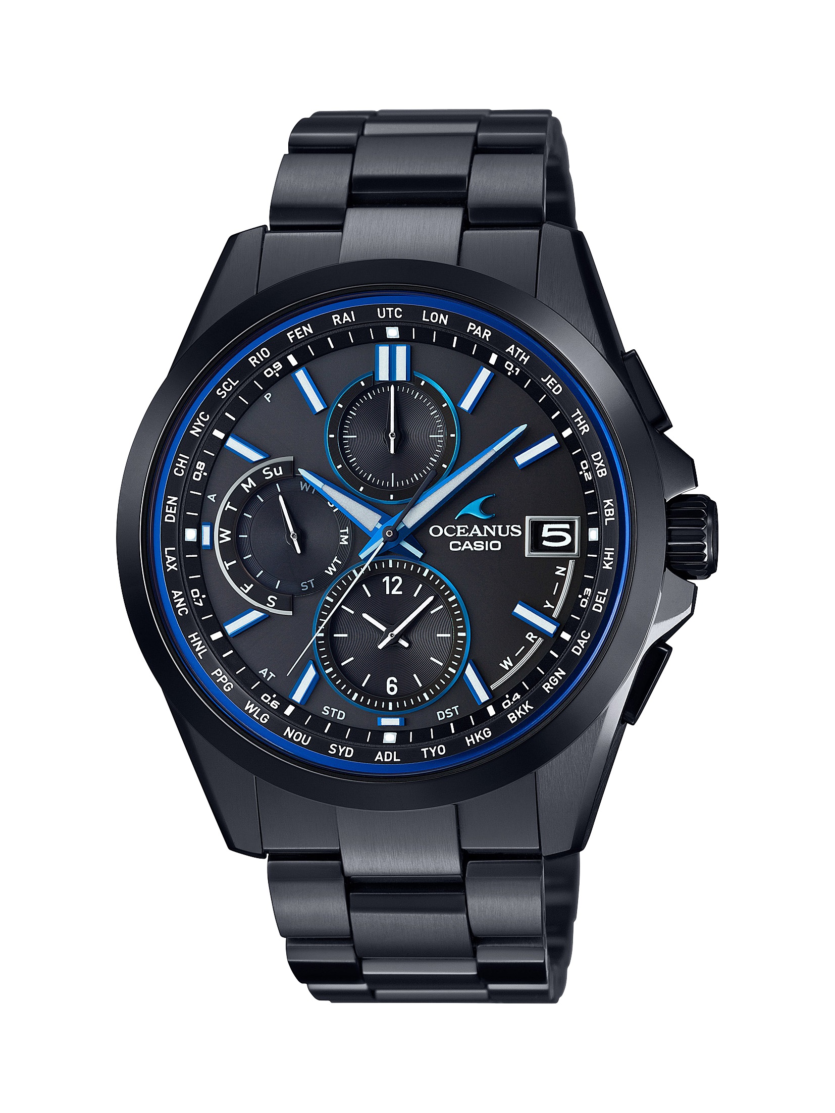 OCEANUSのブランドカラーであるブルーを際立たせる仕上げにしました。ワイドフェイスのダイアルは見やすく文字板を2枚重ねることで立体感を演出しています。熟練の技を要するザラツ研磨、