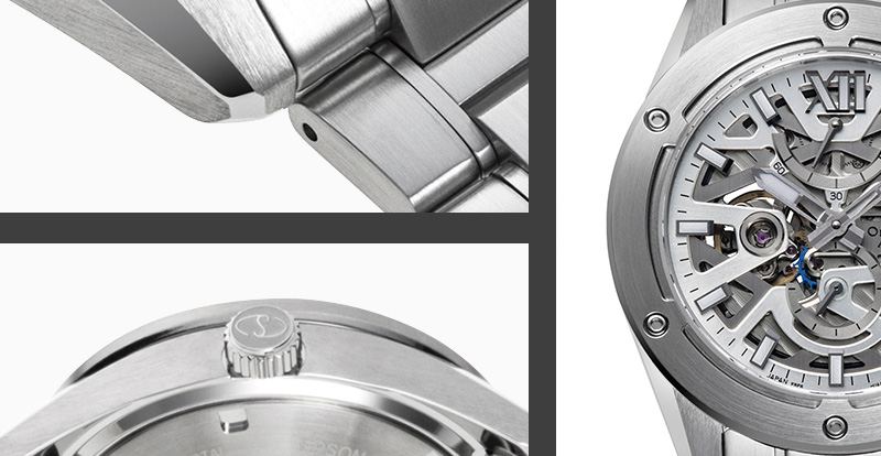 精緻で奥行を感じさせるフェイスは、高い精度で抜き加工、仕上げ分けされた2枚の文字板をムーブメントの上に重ね合わせたデザイン。その隙間から覗くシリコン製がんぎ車を始めとする高精度パーツが、一層深い造詣と迫力を演出します。