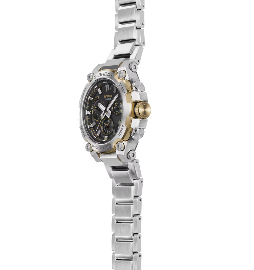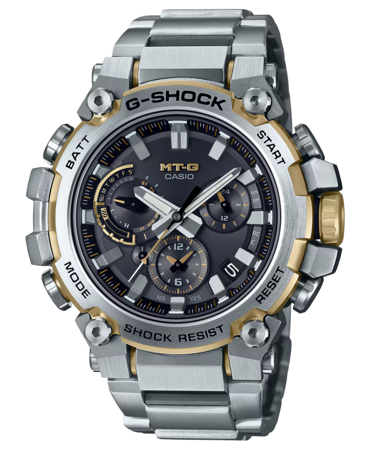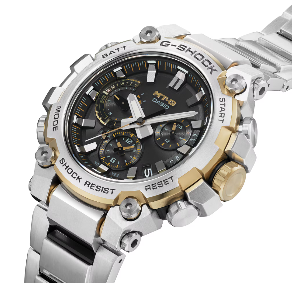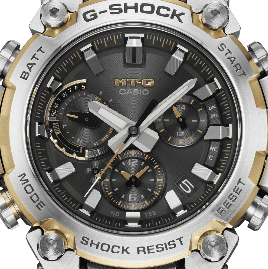 メタル素材とG-SHOCKの起源である樹脂素材を融合して革新的な構造美を追求するMT-Gシリーズ。