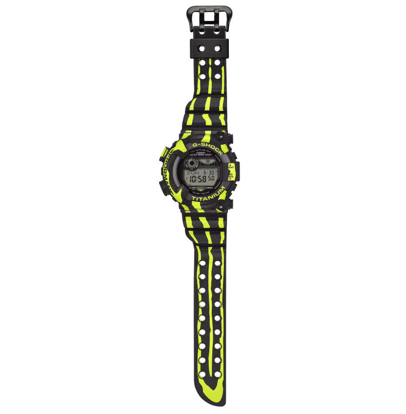 さらに、ケース裏のカエルのキャラクター刻印もミスジヤドクガエルの縦縞模様を纏った特別仕様に仕上げています。