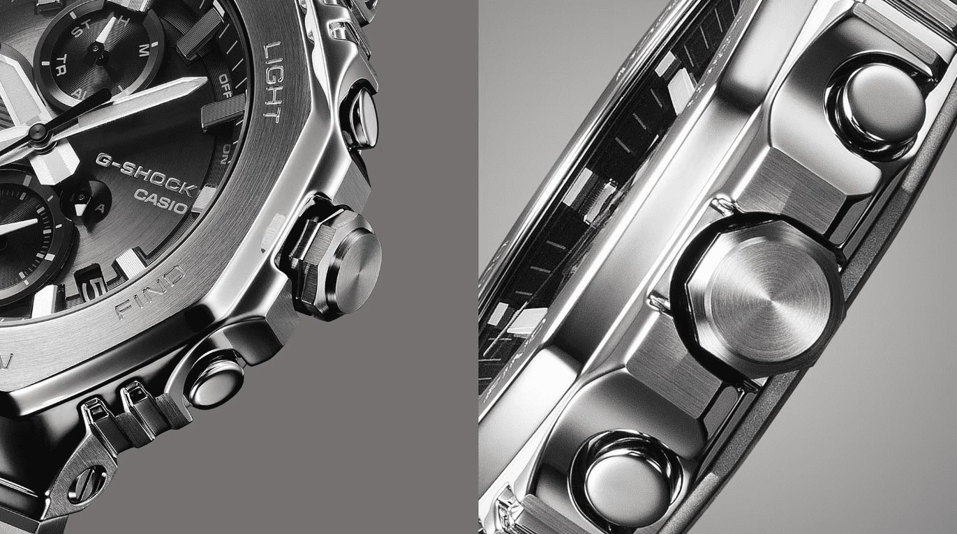 G-SHOCK初代モデルのコンセプトを受け継いで開発されたアナログ「2100」シリーズのフルメタルクロノグラフです。