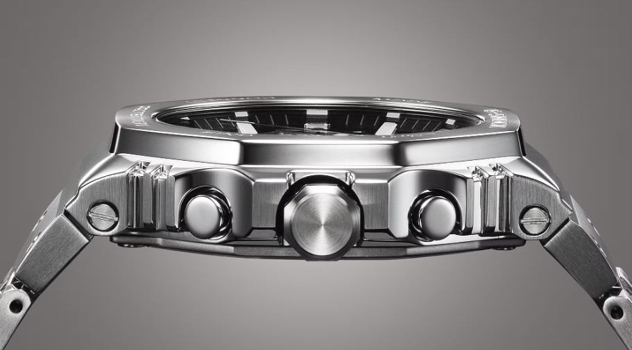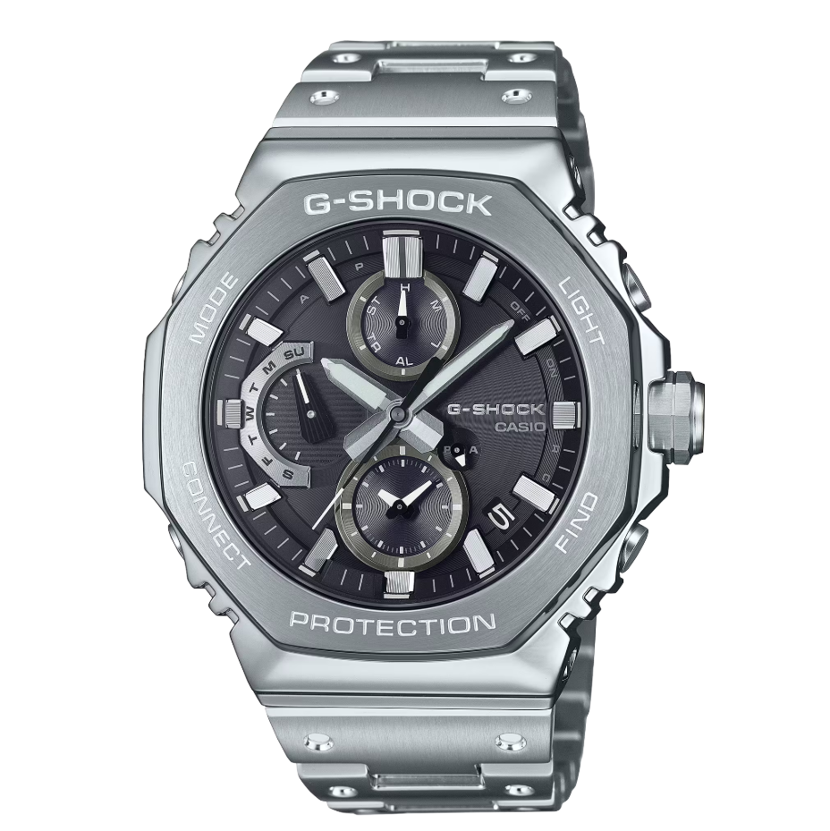 G-SHOCK初代モデルのコンセプトを受け継いで開発された「2100」シリーズのフルメタルクロノグラフモデルです。
