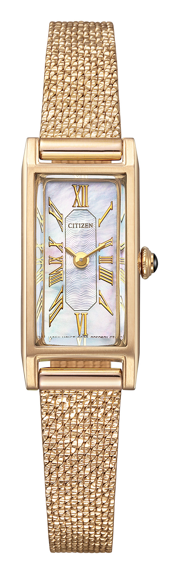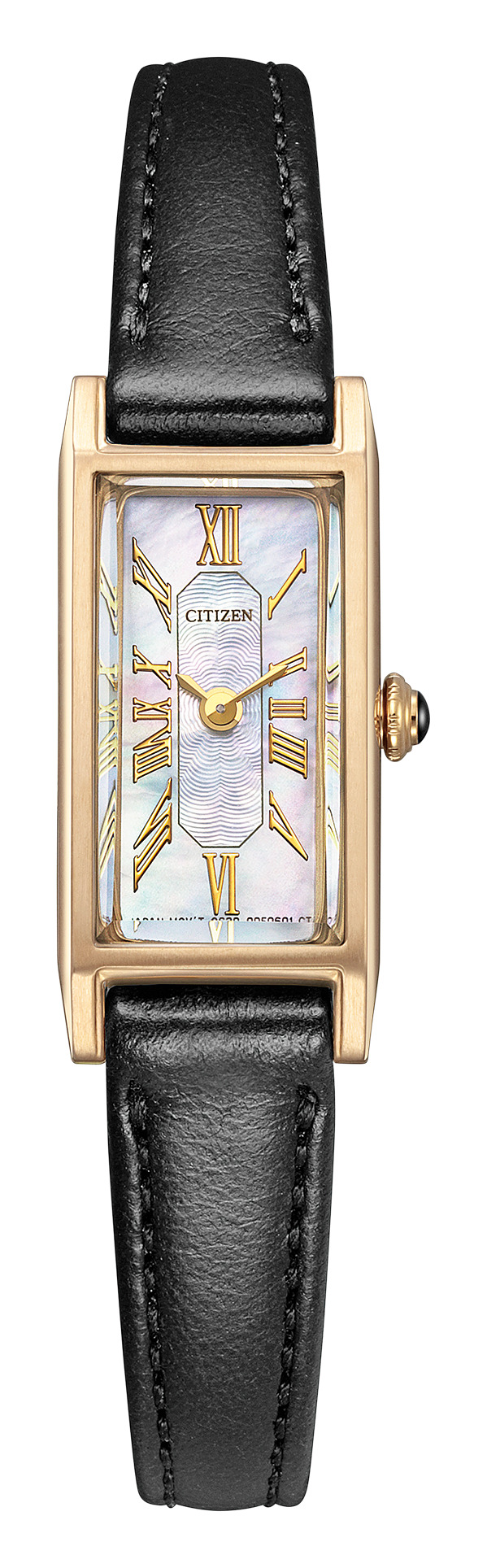 スリムな形状が人気のスクエアケースに、美しい白蝶貝文字板を合わせた限定モデル。文字板中央にギョーシェ彫りを思わせるパターンを施し、高級感と華やかさをきわだたせました。