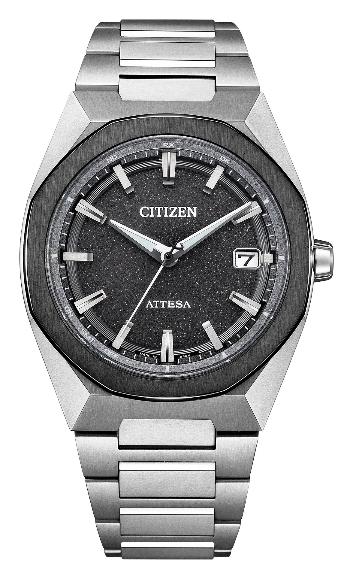 文字板はザラっとした質感でチタニウムの原石をイメージ。立体感を演出する上板とインデックスに、メタリックな見返しリングを組み合わせた3体構造で、シンプルな中にもソリッドな印象と力強さを感じさせる仕上がりです。
