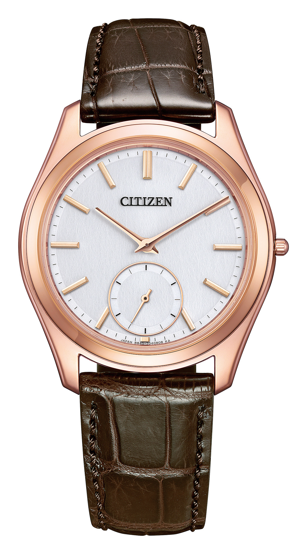 無駄を削ぎ落した薄型フォルムとの調和を追求し、6時位置に配したスモールセコンドはインデックスを短くするなど、ミニマルな要素でまとめています。文字板には日本の伝統工芸、土佐和紙「典具貼紙」を採用し、角度によって表情を変える和紙独特の風合いを愉しめます。