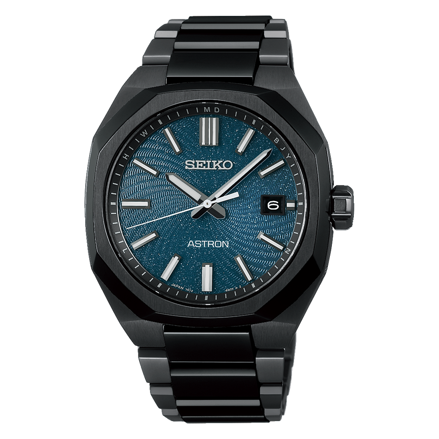 漆黒の宇宙の中で銀河が輝く壮大な情景をオールブラックカラーのケース・ブレスレットと、ダークターコイズカラーをベースとしたラメ入りのダイヤルで表現した2026年初の限定モデル。