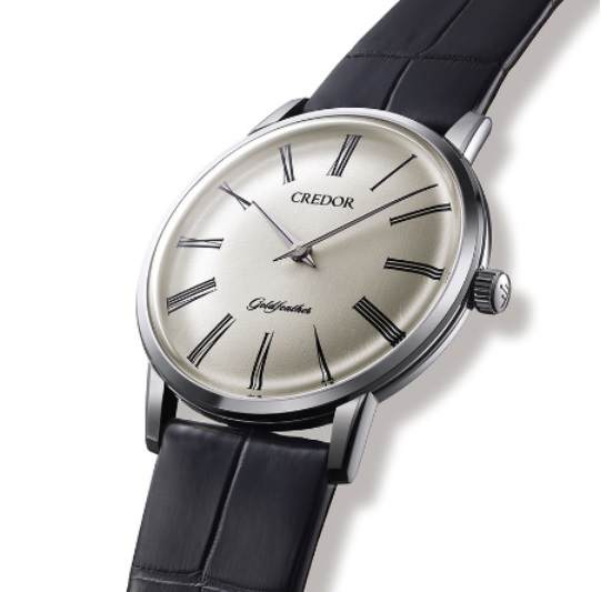 クレドールの前身である1974 年当時のセイコー特選腕時計をオマージュした、「ゴールドフェザー」のクレドール50 周年記念モデルです。
