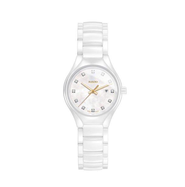 ラドーを代表するシリーズのトゥルー。ダイヤモンドのゴージャスな魅力とともに、注目のホワイトセラミックスの素材は軽量で快適な装着感を実現するだけでなく、長きにわたり耐傷性も高い為、購入時の美しさが継続します。