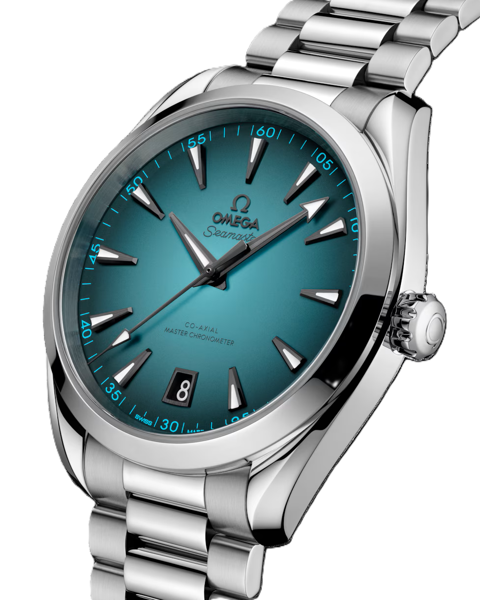 オメガと海の豊かな歴史にオマージュを捧げる「シーマスター アクアテラ」。 41mmのこのモデルは、ステンレススティール製のシンメトリーなケースを備え、海にインスピレーションを得た魅惑的なカラーに彩られています。