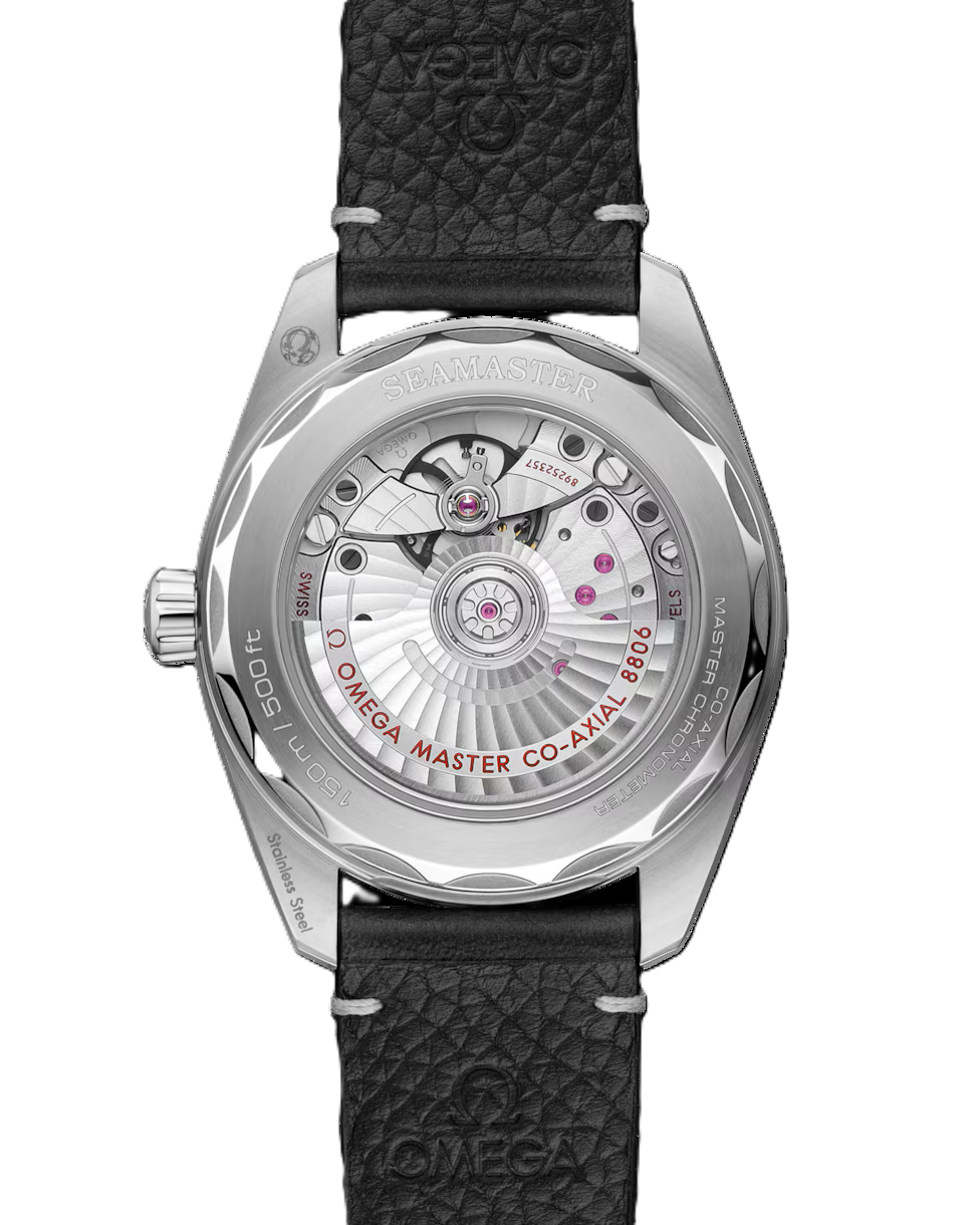 「レイルマスター」がもつ耐磁性のレガシーを継承する、コーアクシャル マスター クロノメーター キャリバー8806を搭載。15,000ガウスの耐磁性をもつこのムーブメントは、透明なサファイアクリスタルのケースバックを通して眺めることができます。
