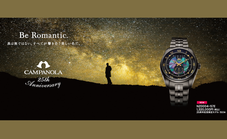 カンパノラ誕生25周年記念「星響」。メカニカルモデルは魅了される螺鈿の文字板にカンパノラ初となるオールDLCが施されております。