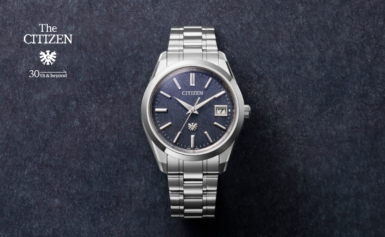 ザ・シチズン30周年を記念する「勝色」は藍染で幾重にも深く染め上げた和紙文字板を採用した、世界限定550本のモデルです。