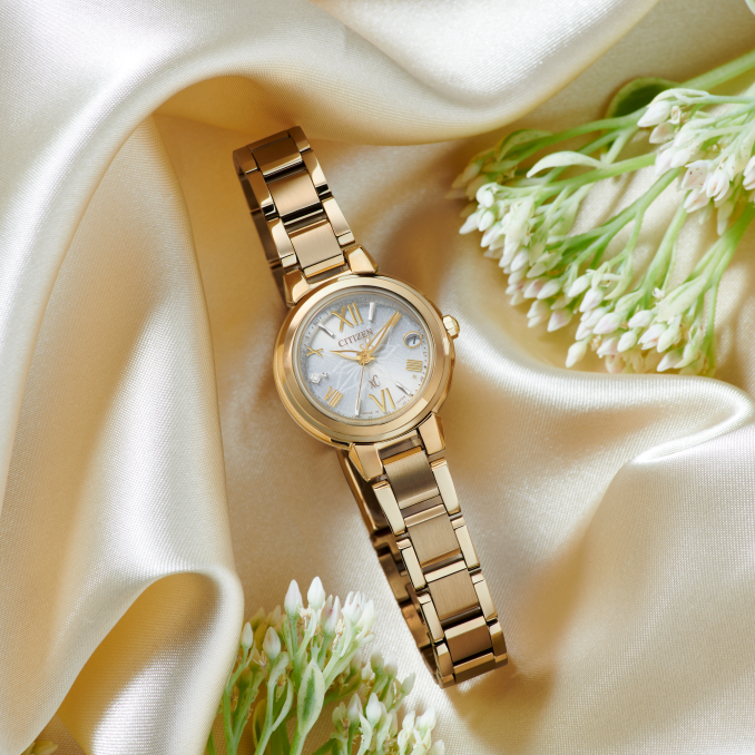 艶やかなホワイトの文字板に、星のオーナメントを思わせる繊細なモチーフがきらめきを添えます。