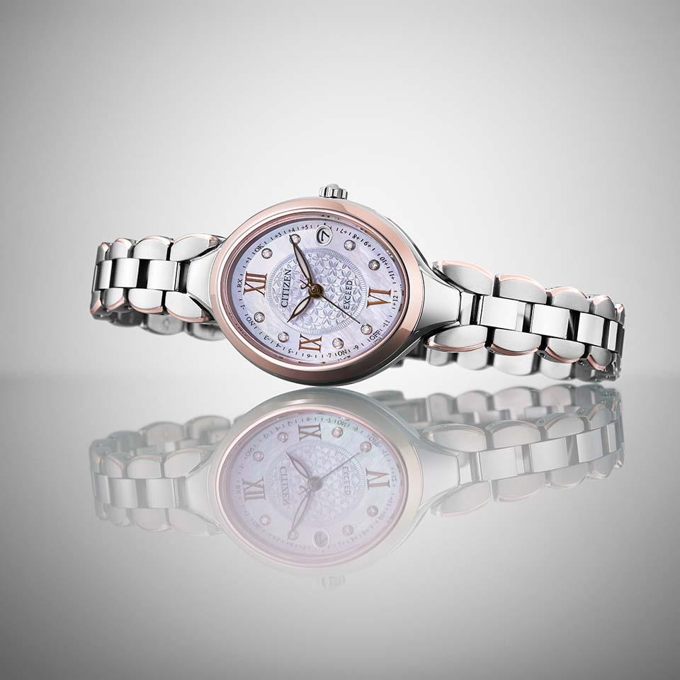 お花をモチーフにしたバンドのデザインが人気のシリーズ。バンドから繋がるようなケースラインがエレガントな印象を演出します。オーバルケースは視認性を確保しながら、着け心地にこだわったサイズ感を実現しました。