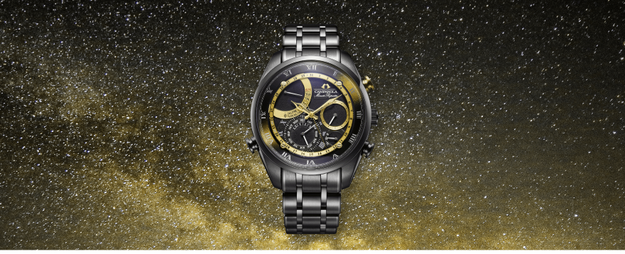 プッシュボタンと合わせて、ゴールドが腕元で印象的に映えます。