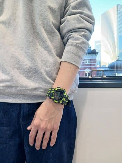 ブラックベースに大胆な蛍光グリーンの縦縞模様を施し、ミスジヤドクガエルの強力な毒性を象徴する鮮やかでタフなデザインに仕上げました。でこぼこの皮膚の質感はバンドとベゼルへのスプレー塗装で再現。さらに、ケース裏のカエルのキャラクター刻印もミスジヤドクガエルの縦縞模様を纏った特別仕様に仕上げています。タフソーラーを備え、蛍光灯のわずかな光でも発電し強負荷のかかる各種機能を安定駆動。