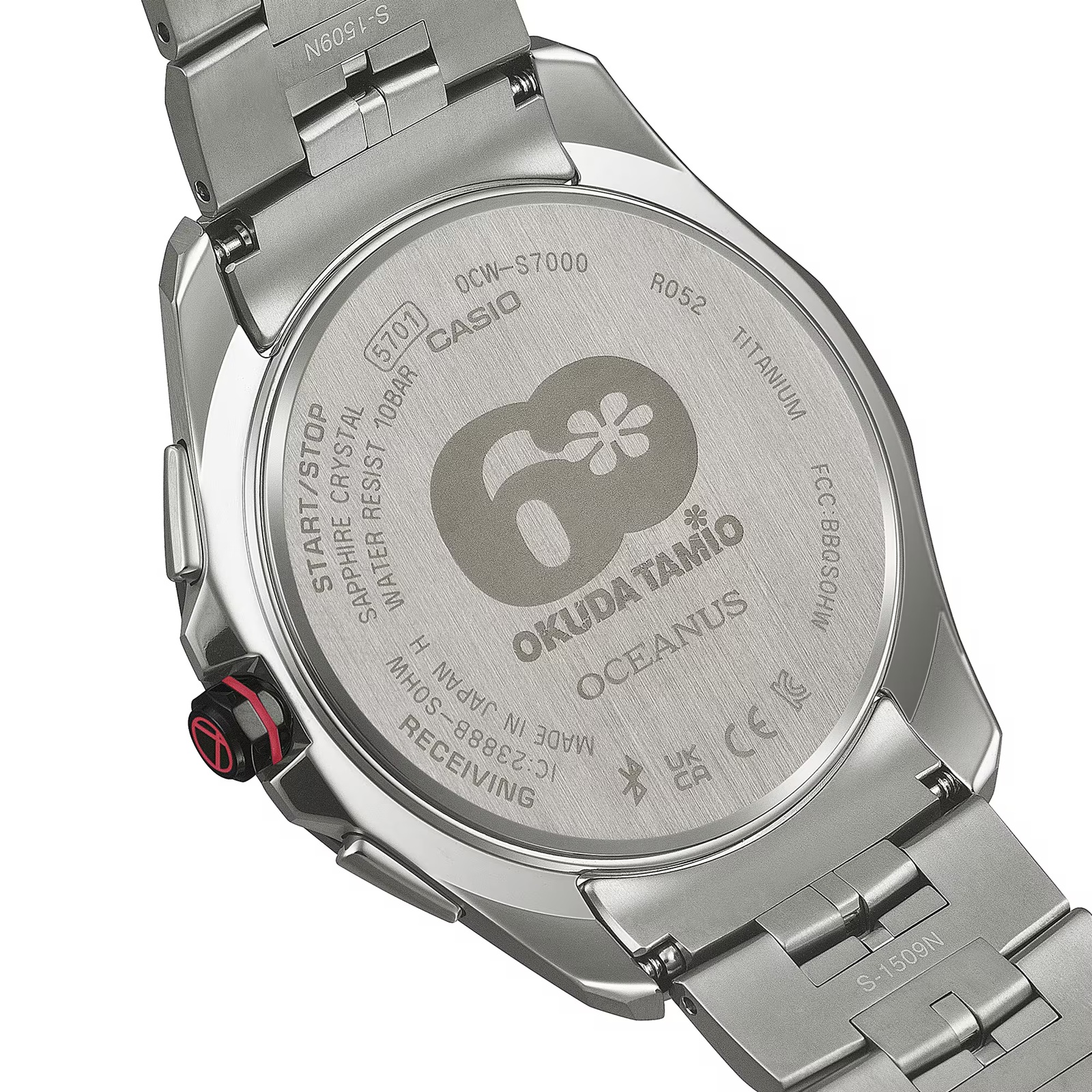 音楽へのこだわりと自分らしさを貫き、今なおミュージックシーンの最前線を走り続ける奥田氏の全面監修で仕上げた数量限定モデル。サファイアガラスベゼルのタキメーターには「OKUDA TAMIO」の文字と生誕60周年を祝い「60」の文字を赤色にし、9時側のインダイアルリングは、自身の好きな色であるオレンジと赤のグラデーションデザインを採用しています。ダイアル、りゅうず、中留カバーにはOTマークをデザインし、裏蓋には60歳を表した特別なロゴを刻印。専用パッケージをご用意した特別なコラボレーションモデルです。