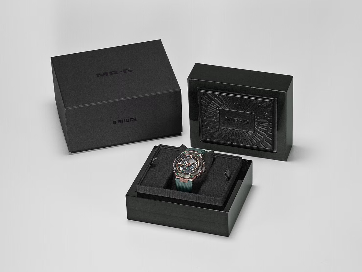 彫金の下地となるベゼルの素材にはチタンを使用。鉄の焼肌に見られる暗い青緑色を表す鐵色(くろがねいろ)を、グリーンDLCコーティングを施すことで表現しました。日本の伝統色として受け継がれてきた気品ある色調が、名匠の手による鳳凰の存在感を際立たせます。
