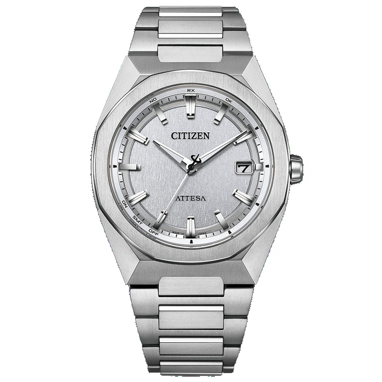 シルバーのワントーンでまとめた清潔感あふれるすっきりとしたルックスで、メタリックな質感を追求した文字板と美しく調和しています。