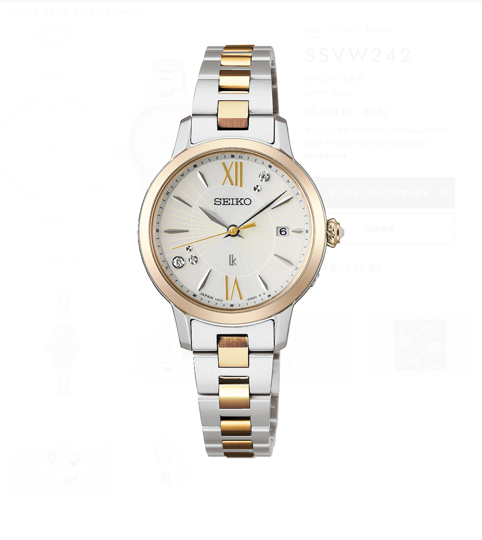 セイコールキア 30周年記念 LUKIA Grow ELAIZA IKEDA × DAICHI MIURA Limited Edition価格:96,800円(税込)