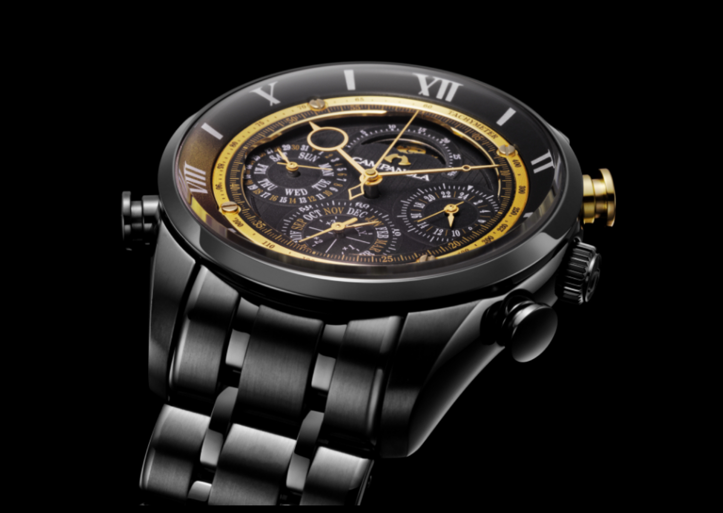 「宙空の美」を表現し、独のデザインと機構で「時を愉しむ」ためのウオッチ、CAMPANOLA (カンパノラ「星醬(ほしのひびき)」は、漆黒の宙でき合う星をテーマに、ブランド 25周年を記念した限定モデルです。