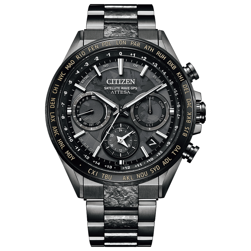 ブランド35周年を迎えた「ATTESA(アテッサ)」と民間月面探査プログラム「HAKUTO-R」のコラボレーションモデル 第2弾。チタニウムを通常よりも高温で熱処理し、再度冷ますことで不均一な組成の結びつきから結晶化を再現した新技術の「結晶チタニウム」をバンドやベゼルに採用。ひとつとして同じものは存在しない特別なデザインです。まるで、月面を様々な角度で写し取ったかのような表情を見せる模様が、これから始まるHAKUTO-Rのミッションを連想させます。文字板のベースにも結晶のイメージを表現。バンド、ベゼルからのつながりがデザインに一体感をもたらしています。裏ぶたには、コラボレーションの証としてスーパーチタニウム™が搭載されているランダーの分解図イメージをレイアウト。ブランド35周年を彩るスペシャルな仕様です。