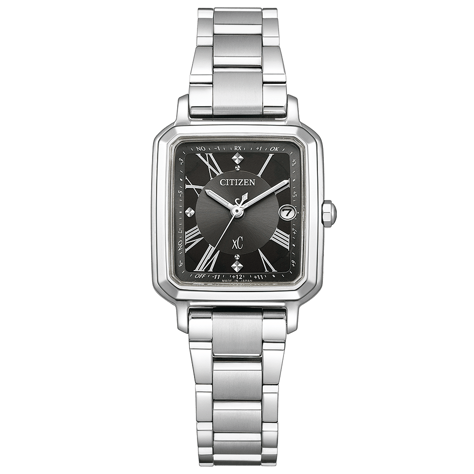 優しくフェミニンなクロスシーらしいケースライン。軽く、薄く、大きすぎないサイズ感で、スクエアを柔らかな印象へ導きます。インデックスは、伸びやかなローマ数字をラウンドに配置しつつ、12時、6時、9時の輝くカットパーツはhikariコレクションの特長です。シーンに合わせて印象が変えられる付け替えバンドがセットされているので、ご自身で付け外しができるインターチェンジャブル構造を採用。メタルバンドは、好みの長さに調節できるシンプルアジャストです。