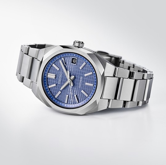 多面カットを施したインデックスと三面カットの時分針、知的な印象を与えるブルーグレーダイヤルには緻密なクリスタルボックスパターンを採用することで、コンパクトサイズならではの高級感のあるデザインを実現。