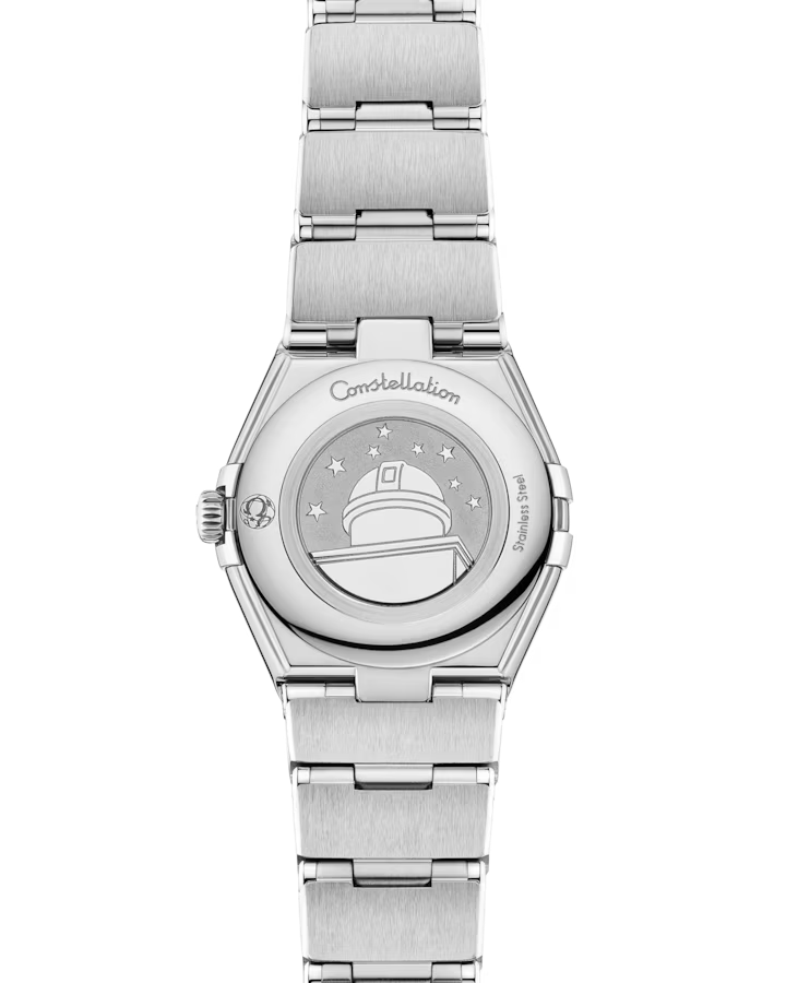 このウォッチには、簡単にサイズ調整ができるアイコニックなポリッシュ仕上げのリンクブレスレットが合わせられています。オメガ キャリバー4061搭載。ケースバックには天文台のメダリオンがエンボス加工で施されています。
