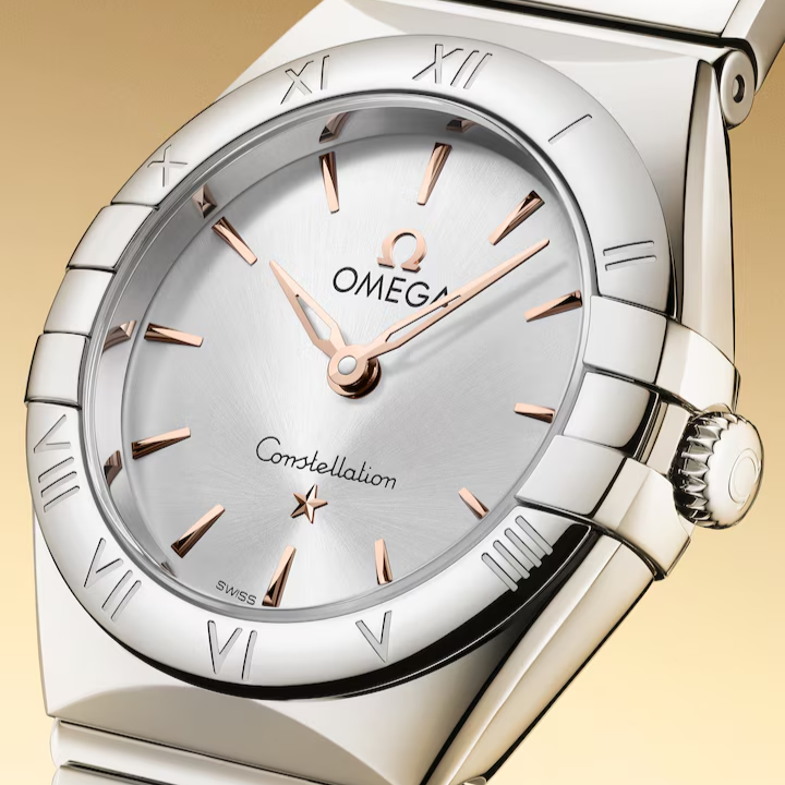 星にインスピレーションを得た、高精度を象徴するウォッチ「コンステレーション」。ケースに施されたハーフムーンファセットと左右にあるポリッシュ仕上げの爪が特徴です。