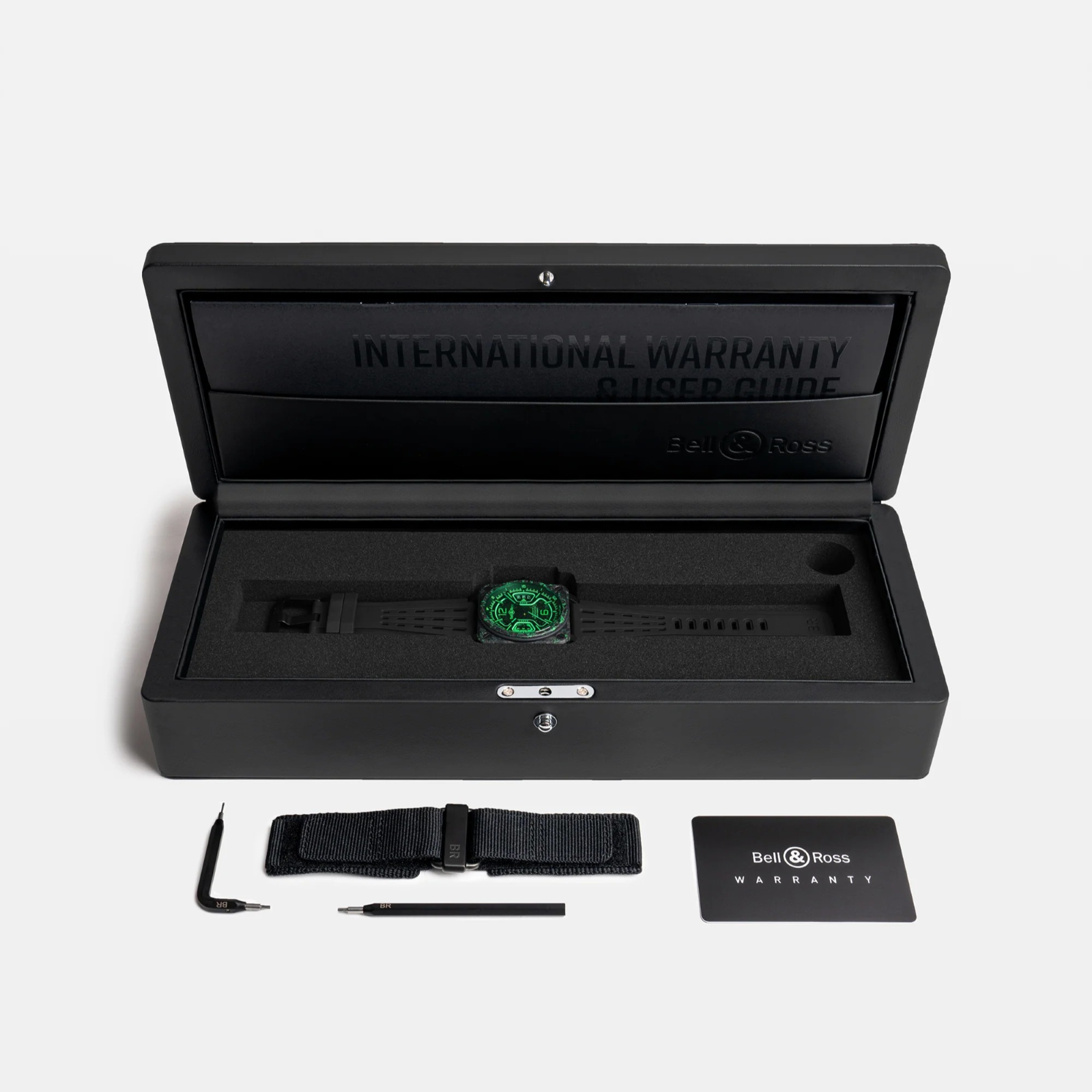BR-X3は、革新的な構造と5年保証のマニファクチュールムーブメントで、BR-03 シリーズを新たに進化させました。航空界からインスパイアされ、力強いデザインのテクニカルウォッチ愛好家のために誕生したモデルです。