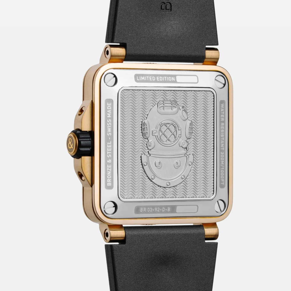 BR-03 Diver Black Bronze は、ブロンズ製ケースにミニマルなブラックダイヤルを組み合わせ、時計の本質へ回帰するデザイン。海洋探検黎明期の精神を体現したダイバーズウォッチです。