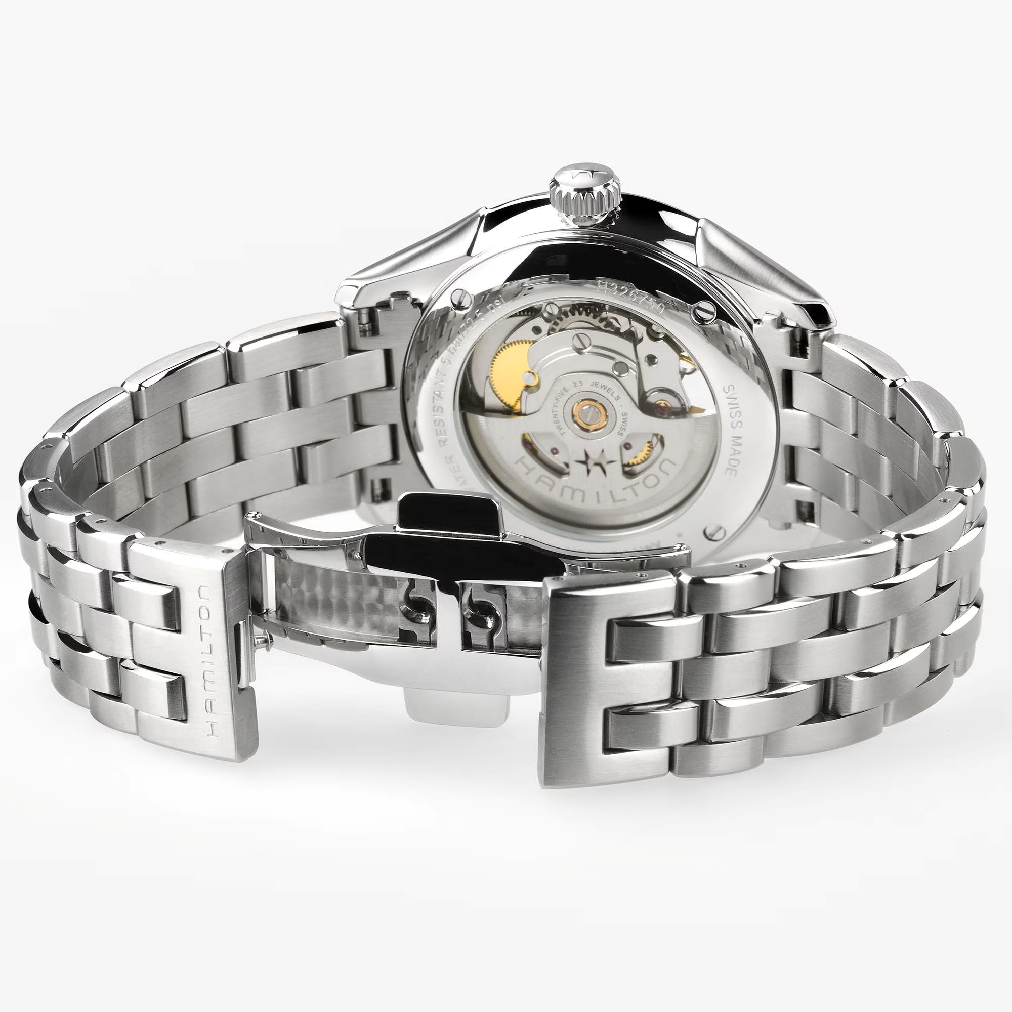 「ジャズマスター オープン ハート 40mm」は、腕元にさりげなく確かな洗練さと気品を宿します。サンレイ仕上げのダイヤルとスモーキーなアクセントが、特徴的なオープン ハートのデザインを際立たせ、サテン仕上げのステンレススチール製ブレスレットが全体を完成させています。現代的な精度に魅力を融合させたクラシックなドレスウォッチです。