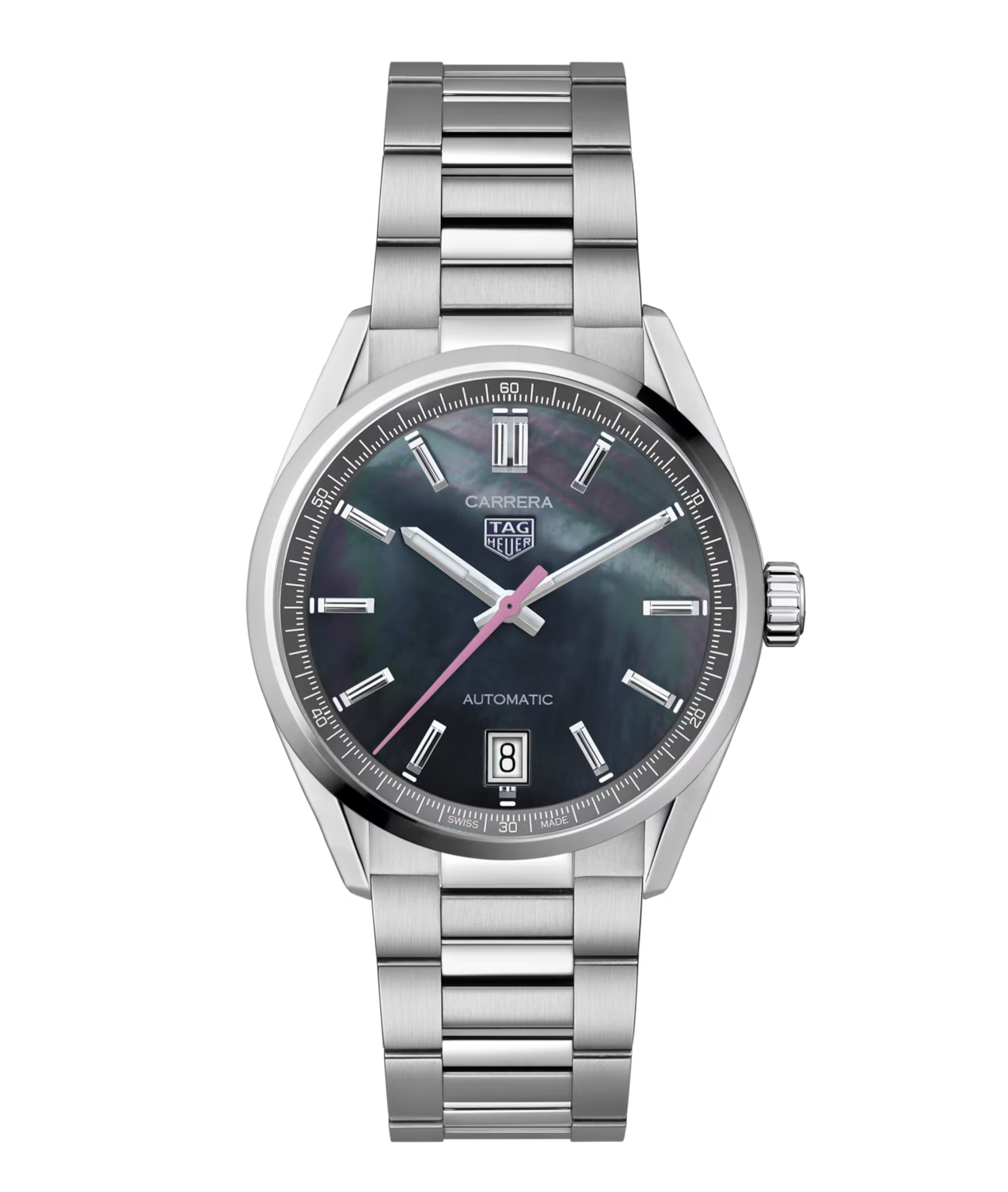 桜から着想を得た日本限定モデル タグ・ホイヤー カレラ デイト ジャパン リミテッドエディション。ブラックマザーオブパール(黒蝶貝) のダイヤルは光の加減や見る角度によって幻想的な輝きを放ち、ピンクの秒針をポイントとしてあしらっています。41mmと36mmの2サイズで展開しているモデルはペアウォッチとしてお使いいただくのもおすすめです。36mmモデルは150本のリミテッドエディションです。