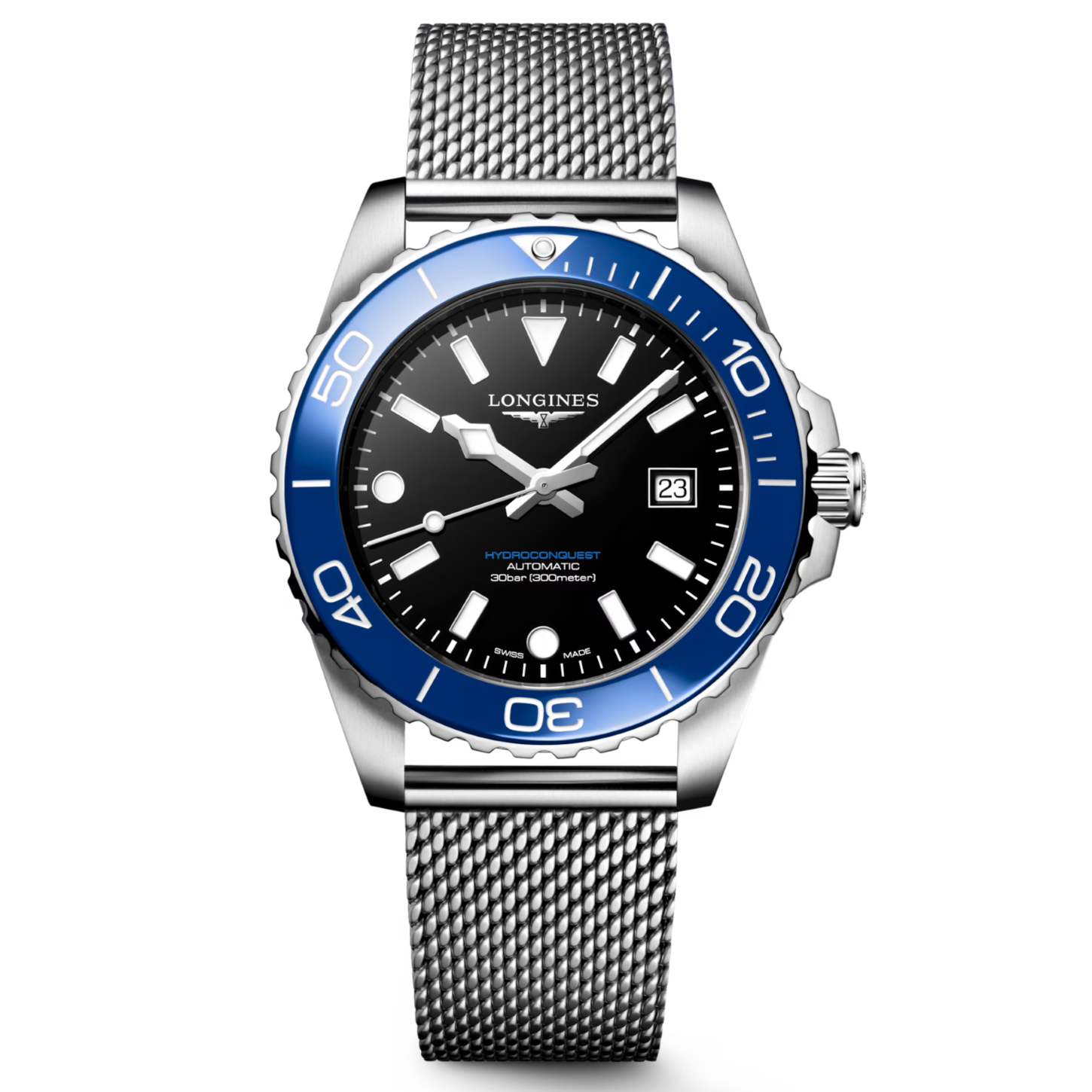 モダンな美しさと確かな性能が融合した「ハイドロ コンクエスト」コレクション ロンジン独自の自動巻きキャリバーを搭載し、30気圧(300m)の防水性能、逆回転防止ベゼル、ねじ込み式リューズ、ねじ込み式ケースバックを採用。