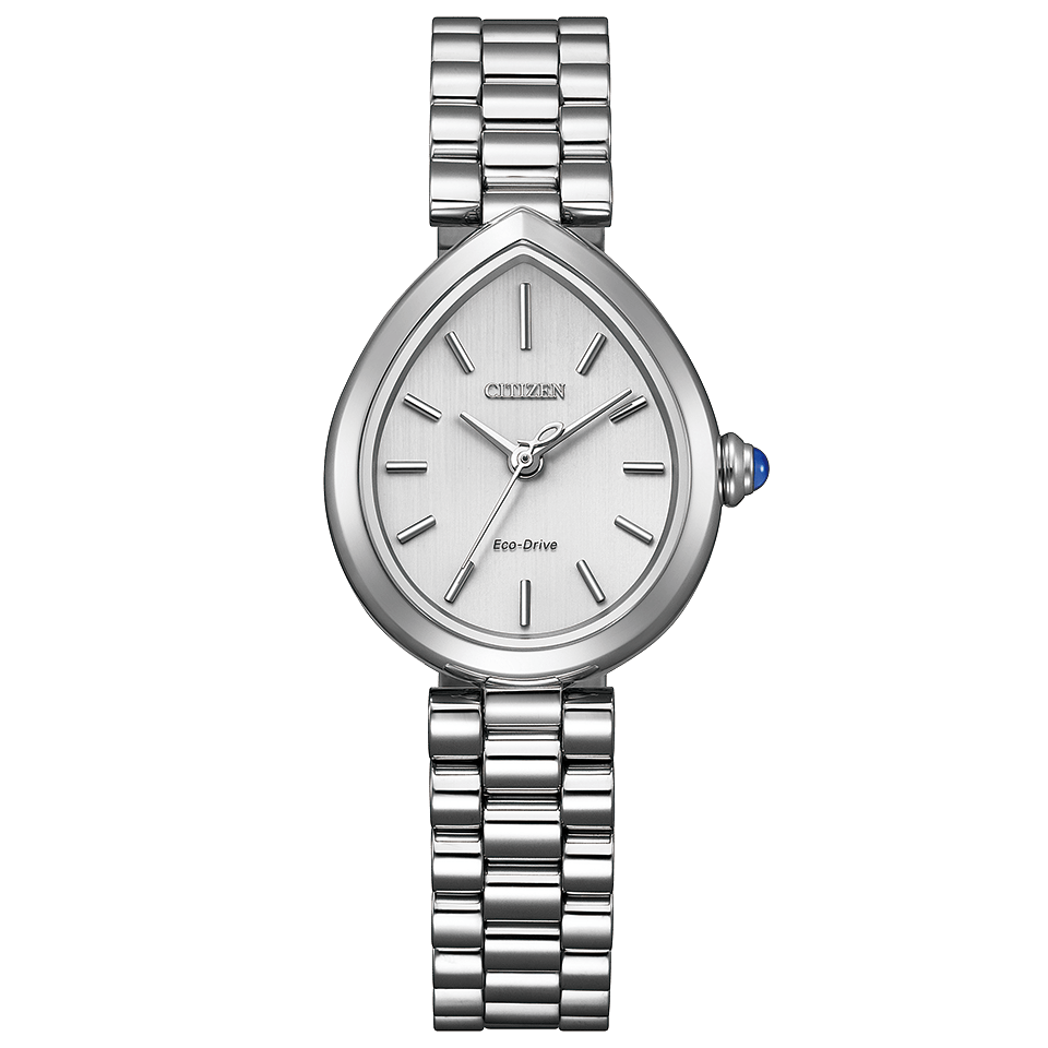 「Rain(雨)」と「Bella(美しい)」を組み合わせて名付けられた“RAINELL”(レイネル)。地球を潤し、世界を映しながら光を反射する雨の雫にインスピレーションを得たジュエリーライクなコレクションです。優雅な曲線を持つドロップ形状を印象付けるかのように、腕の動きでリズミカルな輝きを演出するボリュームある3列バンドを採用。彫刻的なフォルムは、立体感と陰影が美しく際立ち、どの角度から見ても洗練された存在感を放ちます。文字板には、霧雨を思わせるヘアラインパターンを施し、クラシカルで落ち着いたバランスのインデックスを配置、上品な印象に仕上げました。