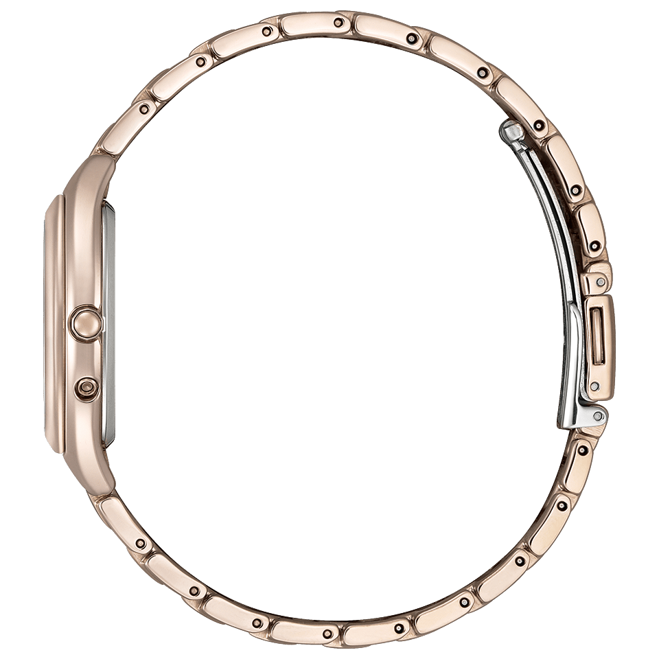 ケースとバンドをやわらかなサクラカラーで統一したトノー型モデル。「毎日着けたくなるベーシック」をテーマに、手元をやさしく彩る上品なデザインに仕上げています。