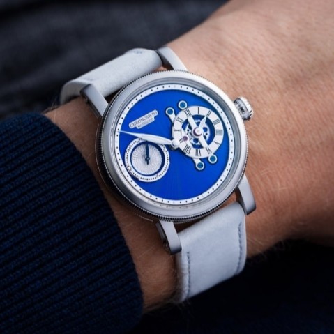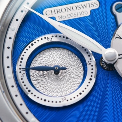 クロノスイス ストライク・ツー ステラーブルーは、動き続ける星の光からインスピレーションを得ています。時計製造のあらゆるディテールが精密さと詩情をも紡ぎ出す機械式時計は、深みのあるブルーのCVDコーティング文字盤に光の速さを彷彿とさせる直線的なギヨシェ模様が手作業で施され、シルバーロジン仕上げのサブダイアルがまるで衛星を導くように浮かび上がります。