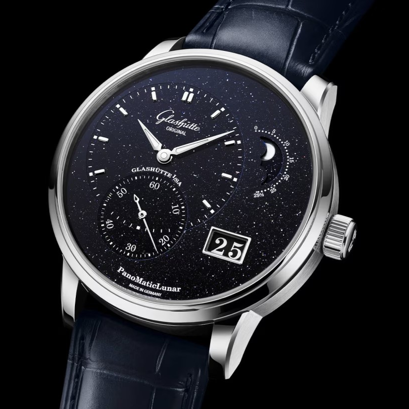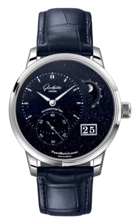 グラスヒュッテの時計製造180周年を記念し、グラスヒュッテ・オリジナルは伝統的なクラフトマンシップと星の輝きを融合させたアニバーサリー・エディションを発表します。入念に仕上げられたムーンフェイズと特徴的なパノラマデイトを備えた左右非対称な文字盤レイアウトのパノマティックルナは、グラスヒュッテ・オリジナルの現代的な側面を体現しています。直径40㎜のプラチナケースに収められた、繊細な輝きを放つ文字盤が魅力的。180本限定。