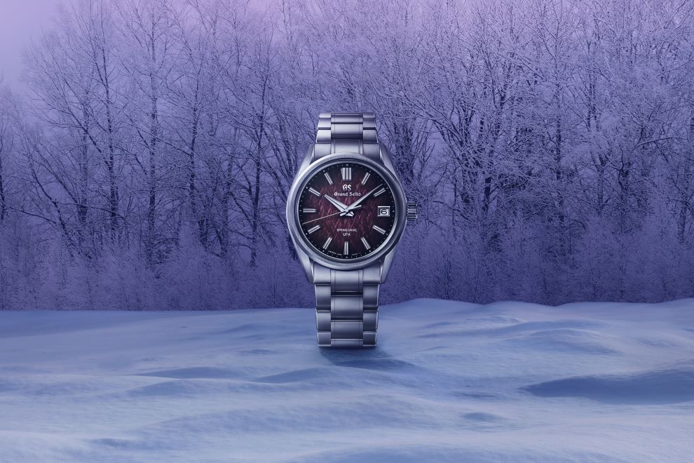 グランドセイコーの真髄と日本の美意識を高い次元で融合させた独自のデザイン文法「エボリューション9スタイル」をベースにした、スプリングドライブU.F.A.の限定モデルです。ダイヤルには、スプリングドライブの製造地である信州地方の樹氷の森が静かに目覚める夜明けの神秘的な情景を、精緻な型打模様とバイオレットカラーの繊細なグラデーションで表現しました。ムーブメントには、ぜんまい駆動式の腕時計としては世界最高(※)の年差±20秒という高精度を実現した「キャリバー9RB2」を搭載しています。※2025年9月現在、当社調べ。