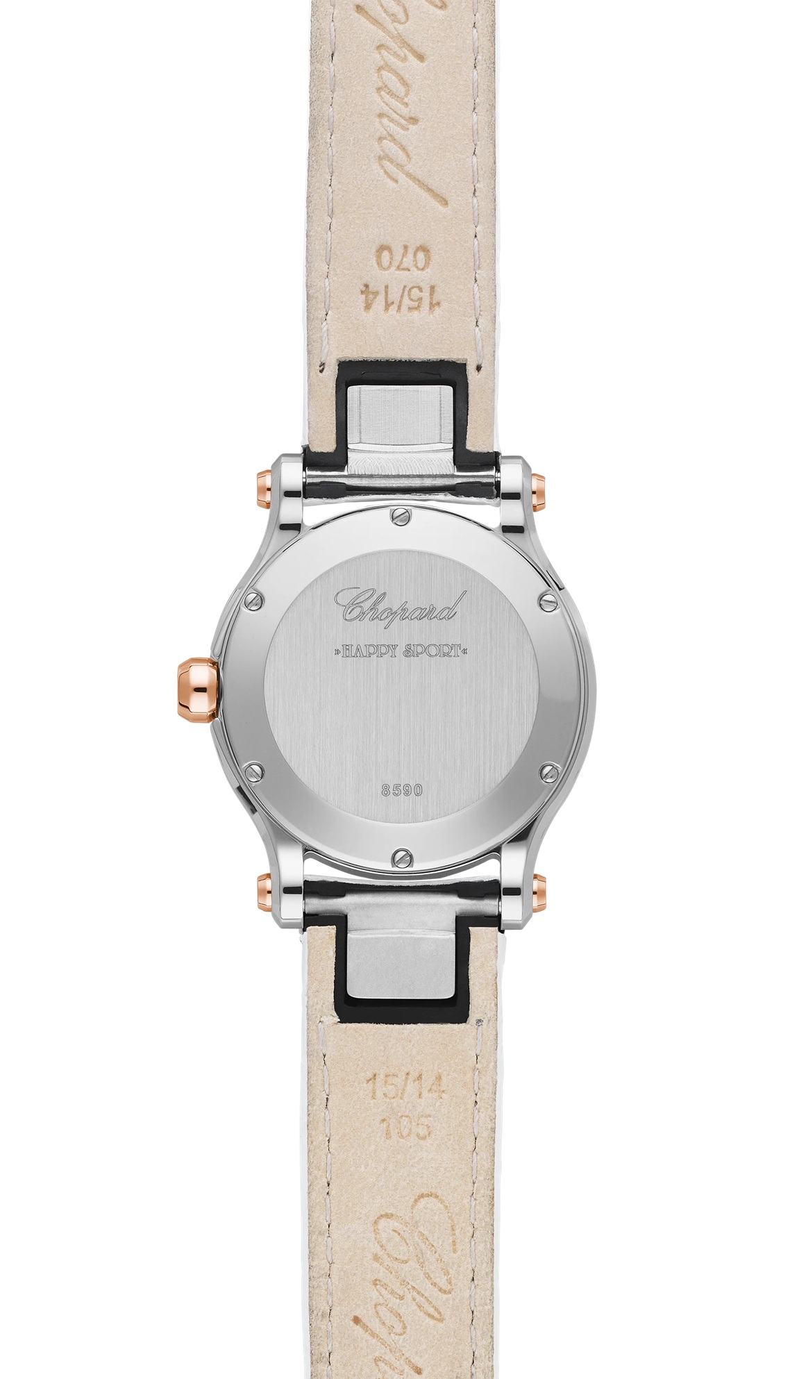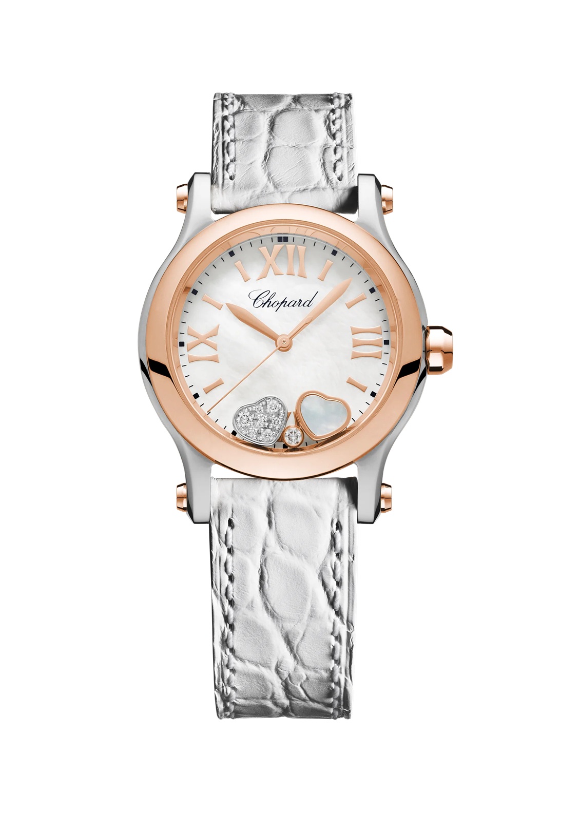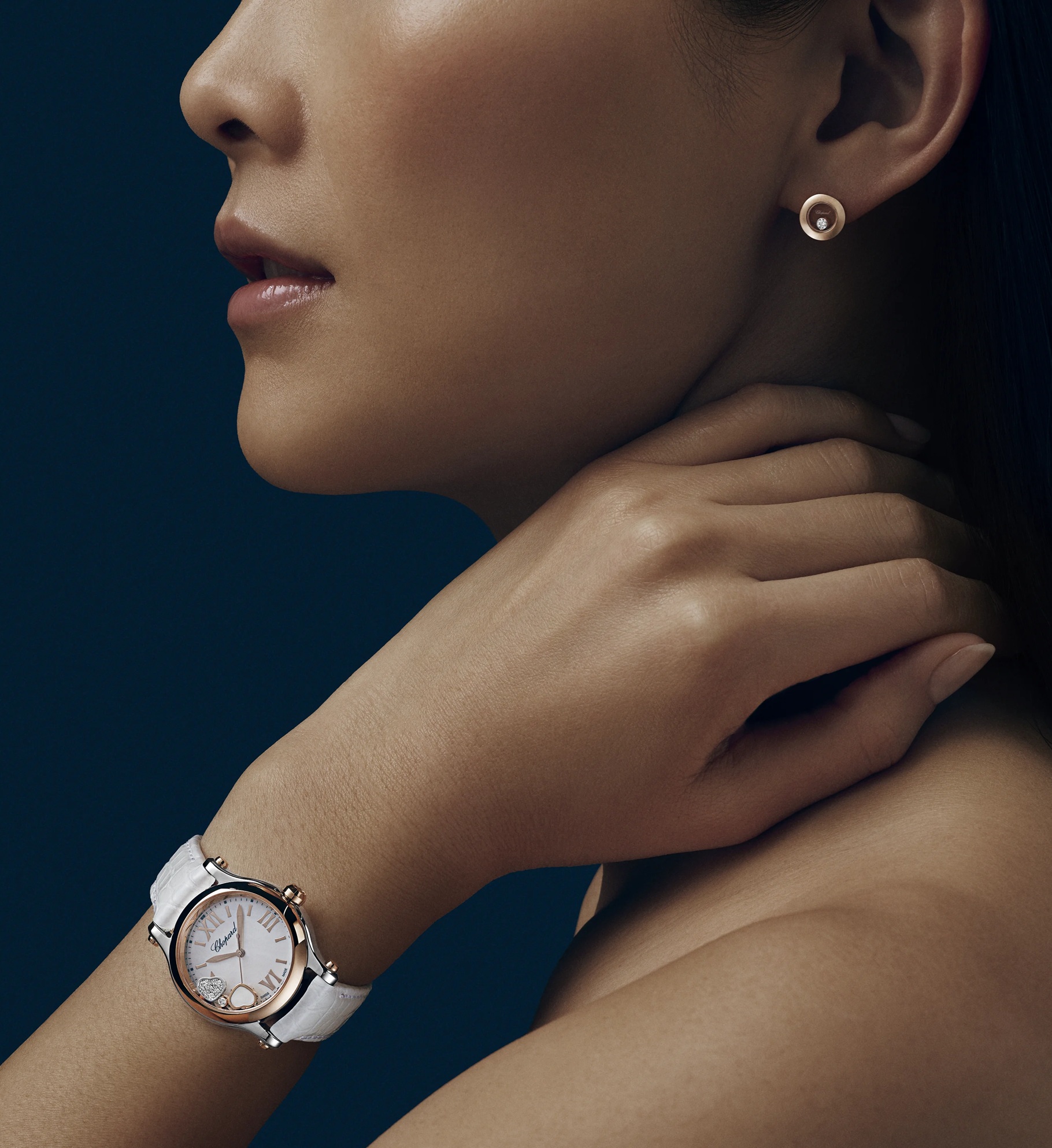 ハッピースポーツ コレクションは、ショパールの創造性と大胆さを象徴しています。2枚のサファイアクリスタルの間で生き生きと自由に舞う陽気なジェムは、1993年にショパールがスティールとダイヤモンドを組み合わせた初のメゾンとなって以来、イマジネーションを永遠の形に残します。