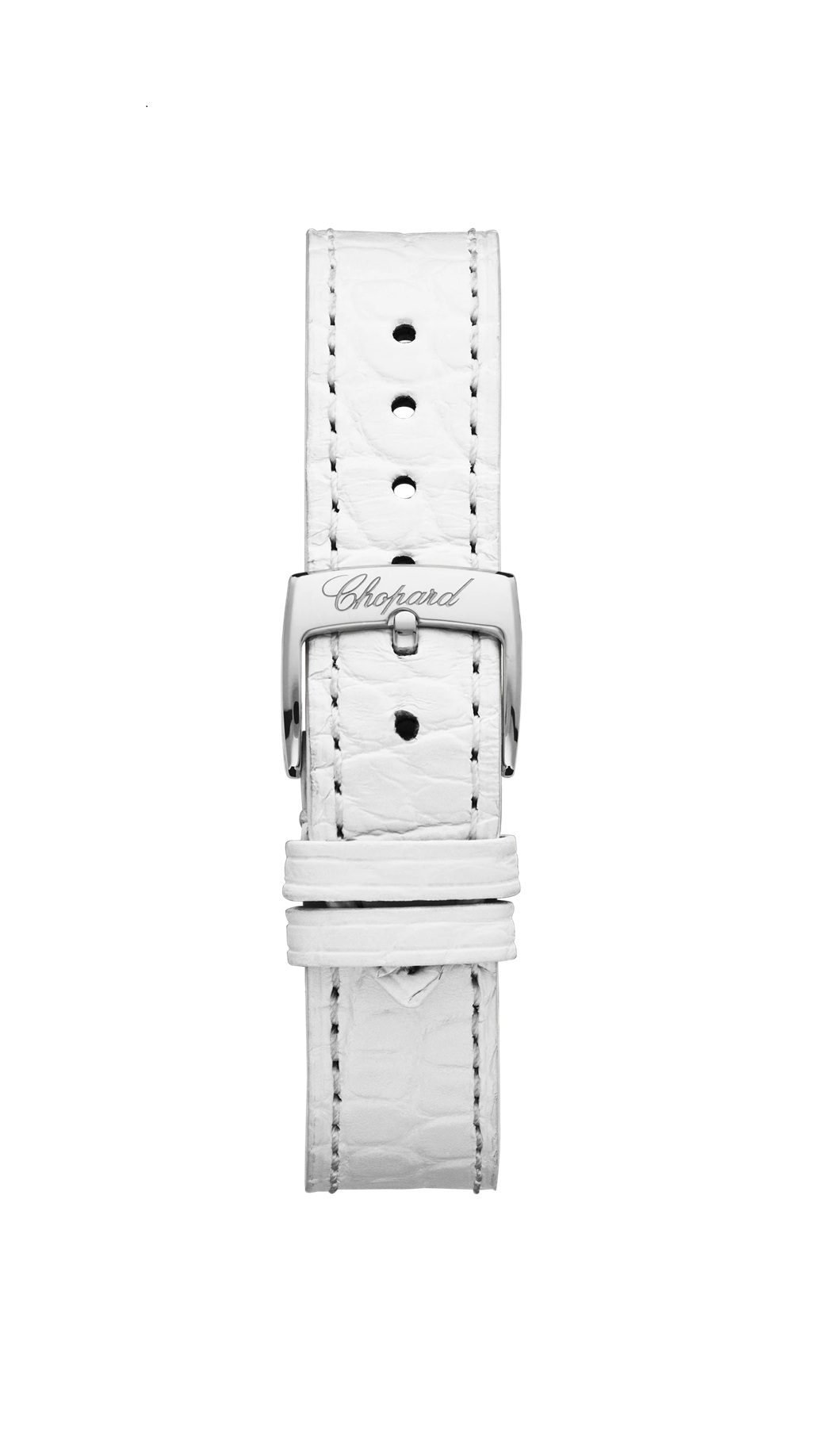ストラップ:ステッチ入り ホワイトカラーのアリゲーターレザー製ストラップ