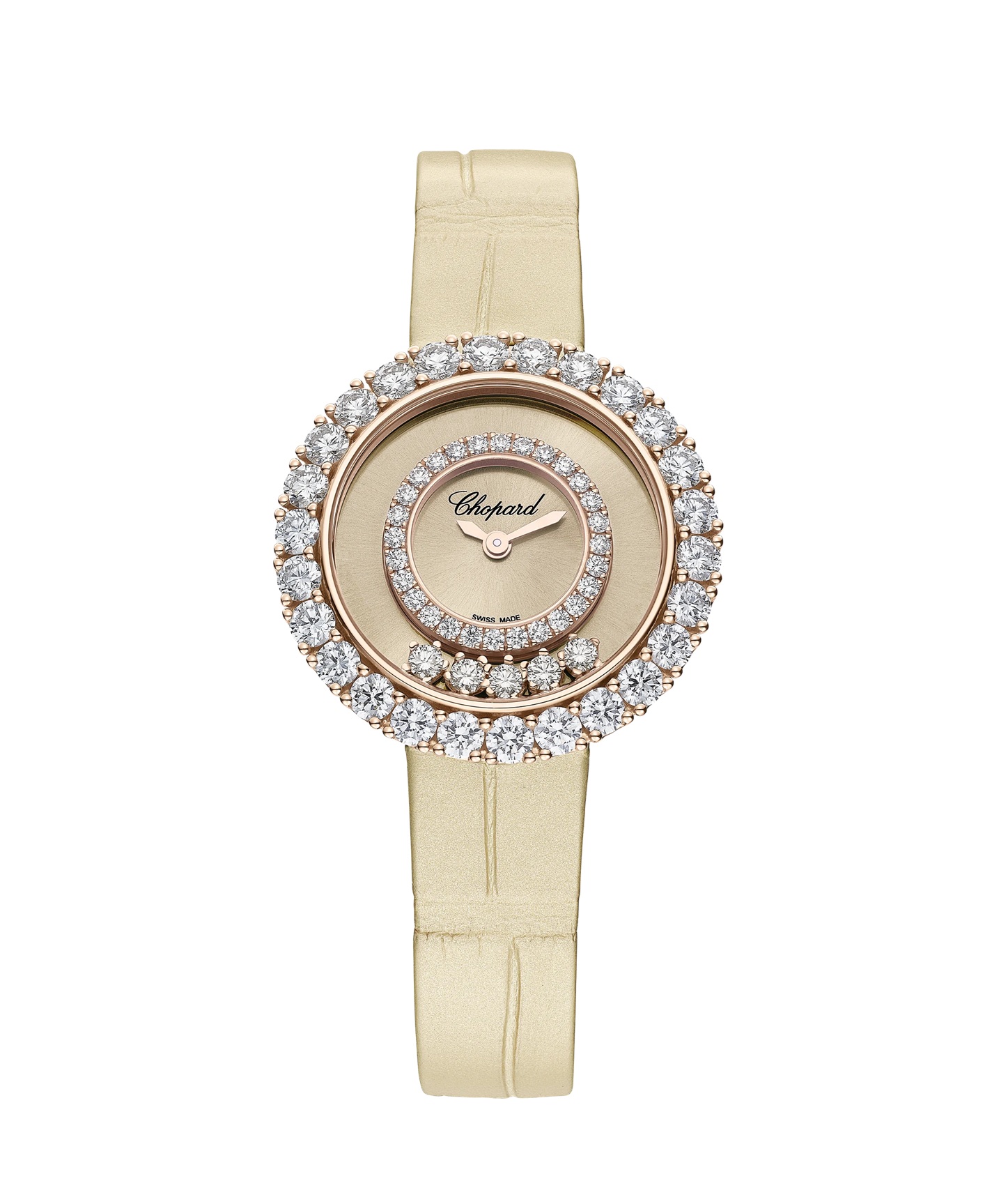 1976年に最初のハッピーダイヤモンド ウォッチが制作されて以来、ムービングダイヤモンドは、このコレクションに喜びと輝きをもたらしてきました。ハッピーダイヤモンド ウォッチは、自立した精神を陽気で軽やかなイメージに仕上げた最初のアイテムで、ここからコレクションは様々な形に変化を遂げていきます。2枚の透明なサファイアクリスタルの間でクルクルと揺れ動くハッピーダイヤモンドが、文字盤の周りを舞い踊りながら、遊び心をエレガントに表現します。 Little Diamonds Do Great Things