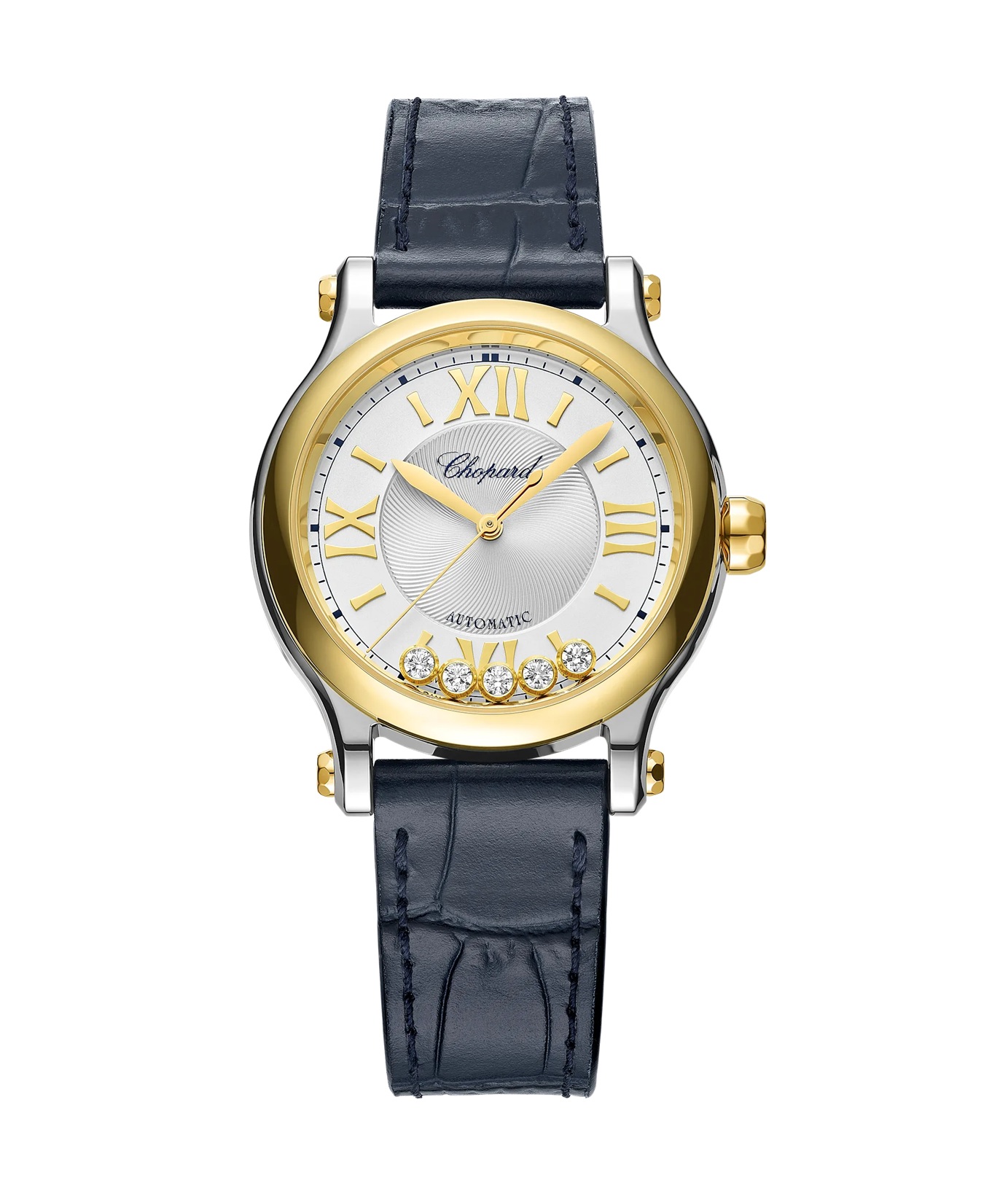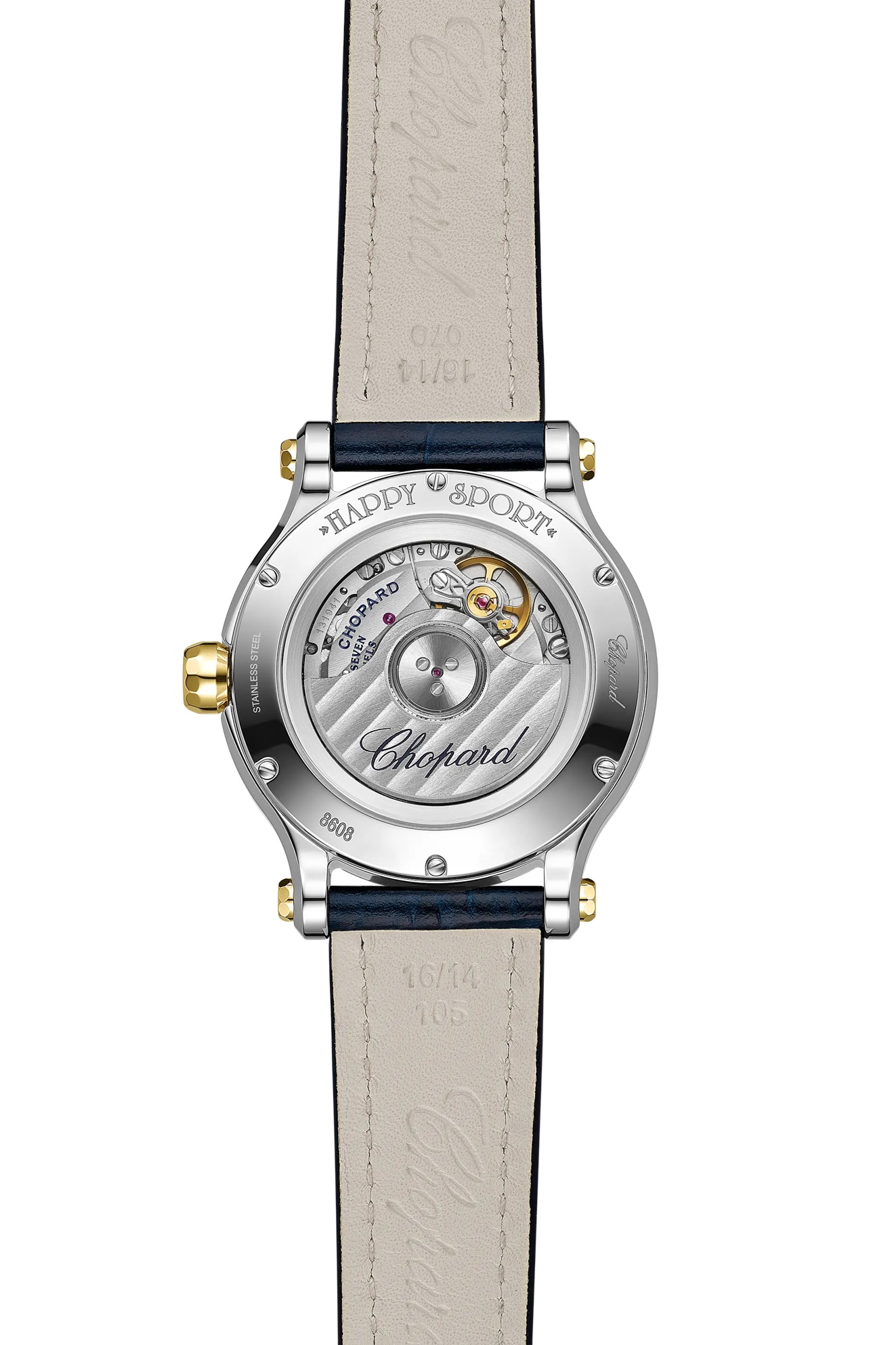ハッピースポーツ コレクションはショパールの創造性と大胆さのシンボル。2枚のサファイアクリスタルの間を陽気に、そして自由に舞うダイヤモンドは、1993年にショパールがスティールとダイヤモンドの組み合わせを提案した初のメゾンとなって以来、想像の力をかき立て続けています。ショパールの誇る時計製造の鑑識によって、フェミニンな33㎜径ケースのハッピースポーツ に向けて特別に開発された機械式の自動巻きムーブメントが搭載されました。小さなダイヤモンドが成しえる大きな夢