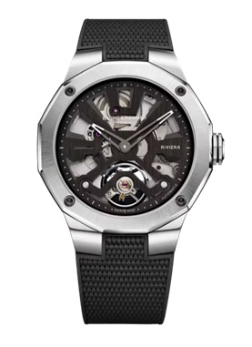 リビエラ 10721は、直径42mmのサテンポリッシュ仕上げが施されたステンレススティール製の12角形スケルトンケース、傷つき防止加工サファイアクリスタルを両面に装備しています。ADLC加工が施されたサンドブラスト仕上げのステンレススティールの4つのスクリューで固定され、ポリッシュ仕上げとサンサテン仕上げが施されたステンレススティール製ベゼルが輝きます。キャンバス型押しの一体型ラバーストラップは、ツールなしで交換可能なインターチェンジャブルストラップ。