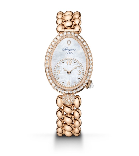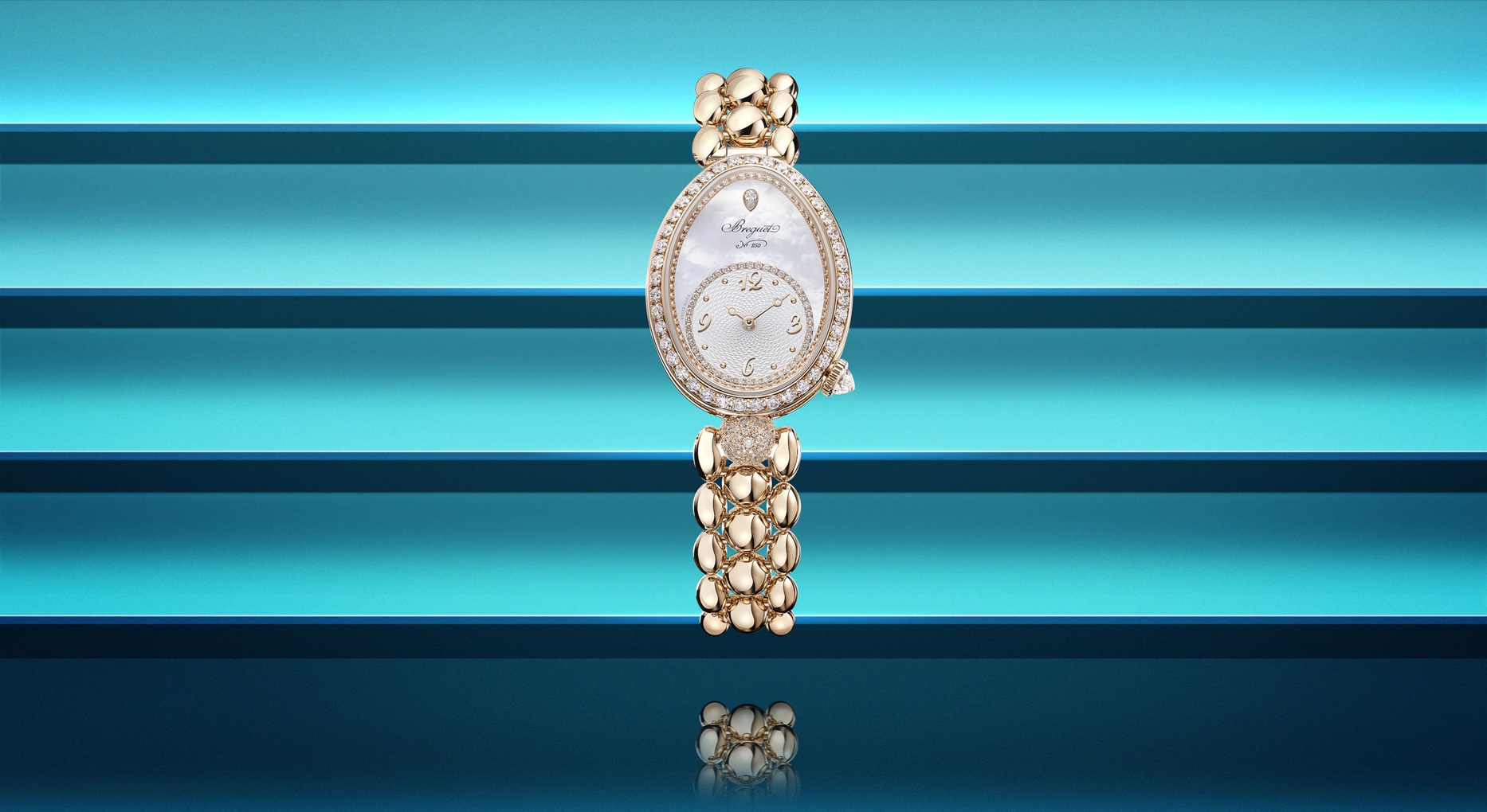 ブレゲ・マニュファクチュールは、250周年を記念して、「レーヌ・ドゥ・ナープル」に新しいモデルを加え、コレクションを充実させました。Ref.8925は、新しいフェイスデザインとオールゴールドのブレスレットです。ブレゲゴールドが初めて採用されています。ジュエリーのようにデザインされたバリエーション豊かなこのモデルは、一日のあらゆる時間、どんなシーンにも寄り添う理想的なパートナーです。