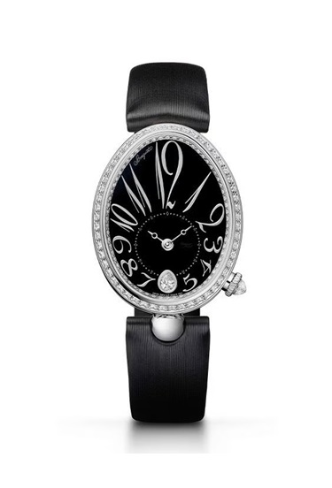 ブレゲ針ともいわれる“アップルハンド”を擁し、6時位置にペアシェイプのダイヤ、そしてケースとストラップを結ぶ丸みのあるボールラグの2つのディテールが、ケース径36.50 x 28.45mmのこのウォッチの魅力をさらに高めます。ベゼル、文字盤の外周、リュウズにもダイヤモンドが煌めきます。