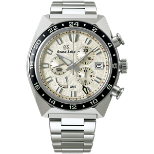 金属の塊のエッジを切り落としたような大胆な形状のラグが特徴的なスプリングドライブクロノグラフGMTウオッチです。 凛々しさと猛々しさを併せ持つ獅子の爪を体現した重厚感のあるケースデザインは、その前足が腕を掴んでいるようなしっかりとした装着性を実現しています。ケースとブレスレットの素材にグランドセイコー独自のブライトチタンを採用し、軽快な着け心地を感じていただけます。さらに、ライオンのたてがみを有機的なパターンで表現したシャイニーホワイトのダイヤルと、幅が広いインデックス、時針をひときわ強調した針のデザインが相まって、知性の奥底に眠る野性を呼び起こすかのような力強いタフネスデザインに仕上がっています。また、インデックスと針に施したルミブライト(発光塗料)による夜間の高い視認性や、20気圧防水の高い防水性能など、スポーツウオッチにふさわしい性能を持ち合わせています。 平均月差±15秒(日差±1秒相当)の高精度なスプリングドライブムーブメント「キャリバー9R86」を搭載し、ストップウオッチ針や秒針の流れるようなスイープ運針の動き、GMT針の存在などがスポーティな印象を加速させるモデルです。