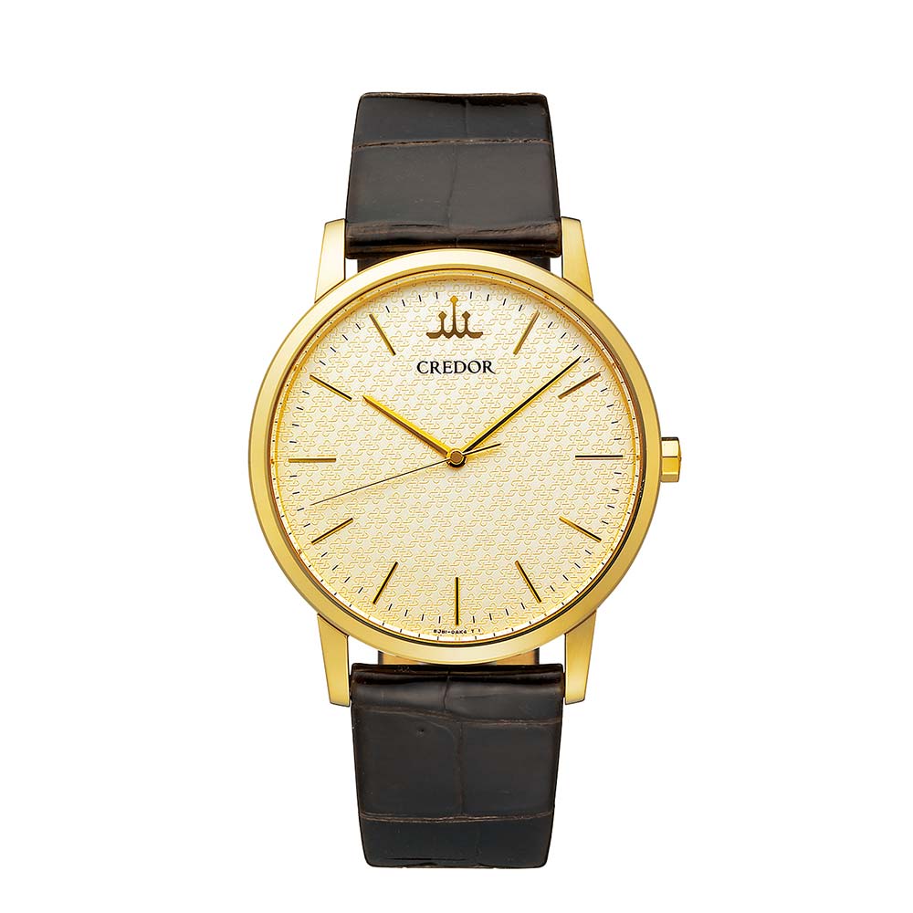 貴金属18Kイエローゴールドを贅沢に使った、クレドールが誇る薄型ドレスウォッチ。