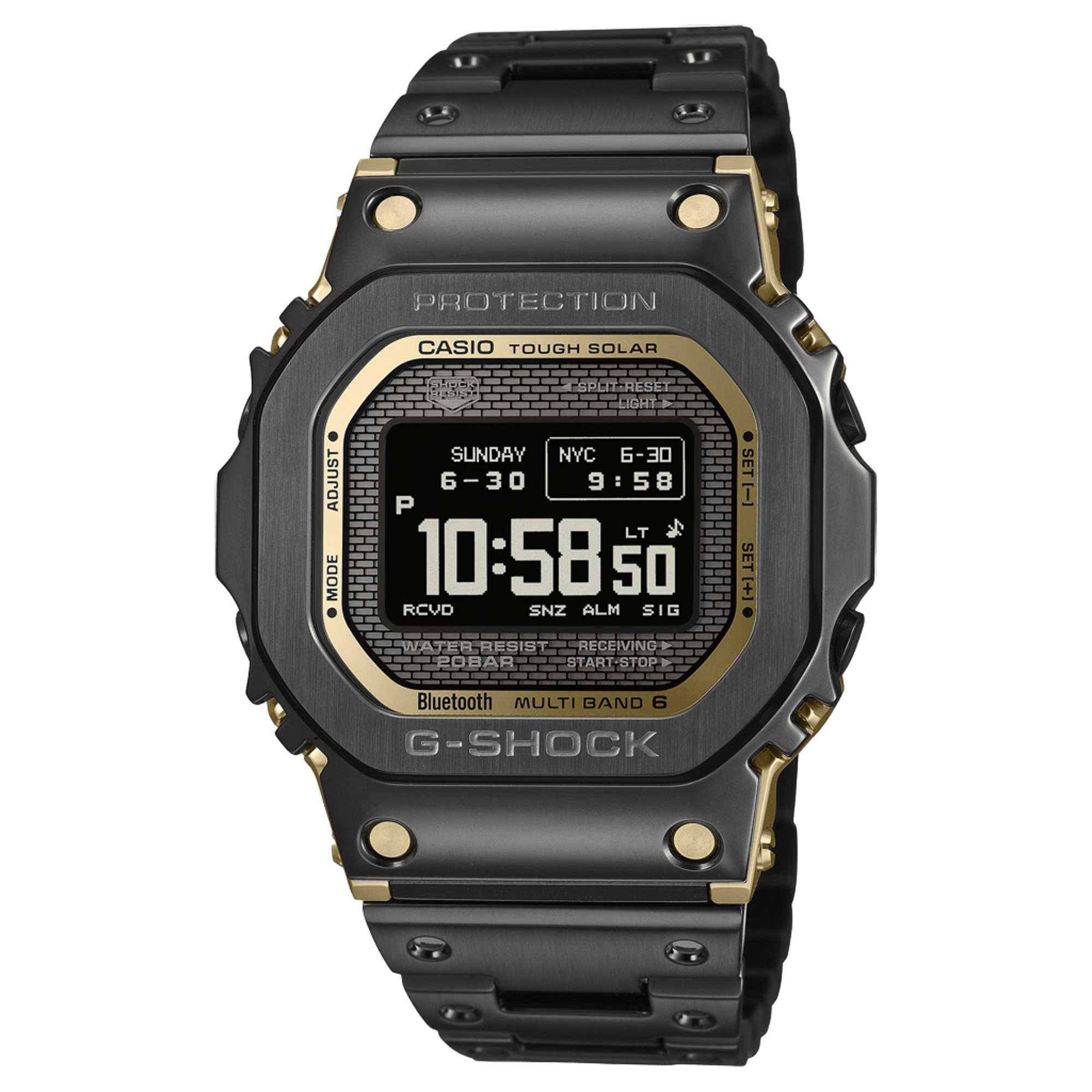 ベゼルとセンターケースを上下で連結した構造を開発。ケースサイドから見える造形が構造の美しさを強調。フルメタルながらG-SHOCKの耐衝撃基準をクリアし、気密性に優れたスクリューバックケースも採用しています。